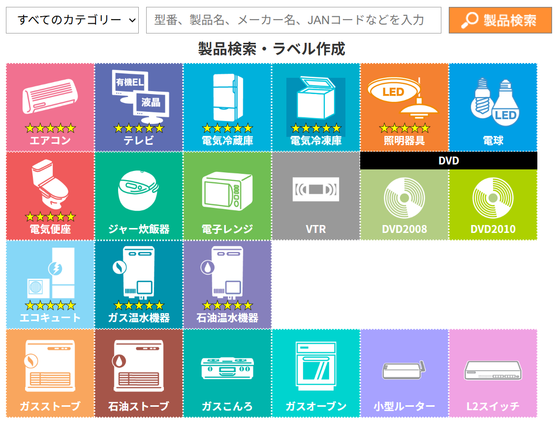星の数が多いほど省エネ性能が高いことを示しており、最高5つ星評価となっています。1.0~5.0までの41段階で省エネ家電が評価されています。
